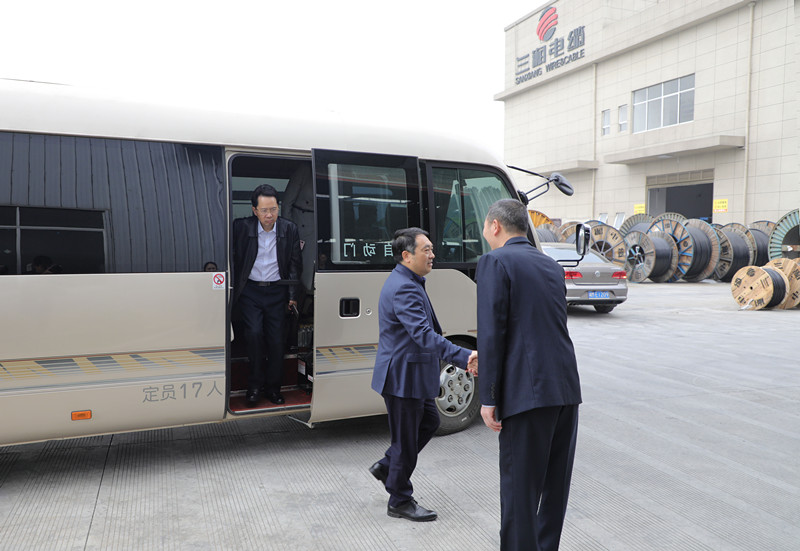 (王雄在調(diào)研時(shí)詳細(xì)詢問了三湘電纜各方面情況,并聽取了三湘電纜董事長(zhǎng)申旺的相關(guān)匯報(bào))